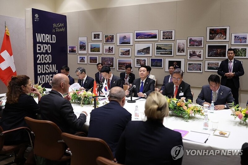 Yoon met with Swiss President Alain Berset, during which he expressed gratitude for the 60th anniversary of diplomatic relations between the two countries, the office said.
