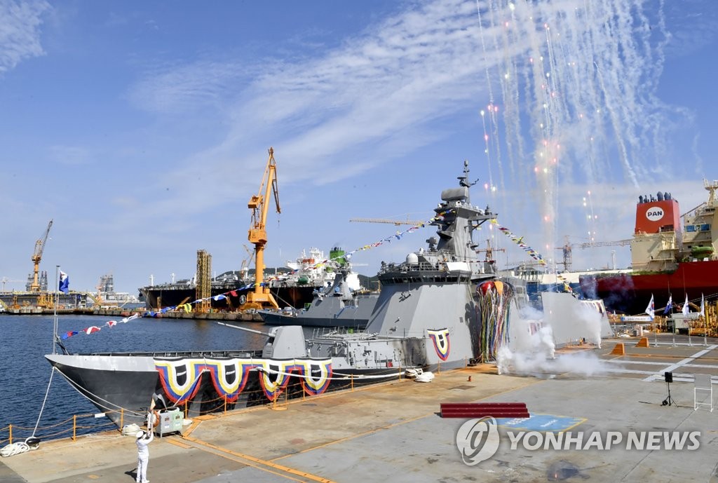| ▲ This file photo, provided by the South Korean Navy on Sept. 8, 2021, shows a launching ceremony for the Pohang frigate at Daewoo Shipbuilding and Marine Engineering's Okpo shipyard in Geoje, 333 kilometers south of Seoul. (PHOTO NOT FOR SALE) (Yonhap) |