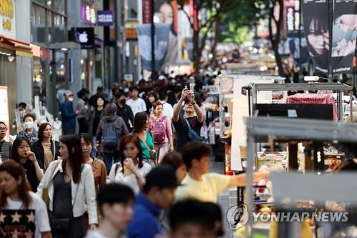 | ▲ The central shopping district of Myeongdong, Seoul, is busy with visitors on May 14, 2023. (Yonhap) |