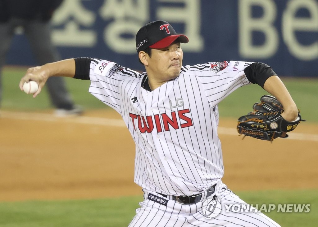 ▲ In this file photo from Nov. 5, 2020, Jeong Chan-heon of the LG Twins pitches against the Doosan Bears in the top of the eighth inning of Game 2 of a Korea Baseball Organization first-round playoff series at Jamsil Baseball Stadium in Seoul. (Yonhap)