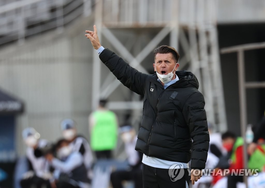 | ▲ South Korea head coach Colin Bell directs his players during their Olympic women's football qualifying match against China at Goyang Stadium in Goyang, Gyeonggi Province, on April 8, 2021. (Yonhap) |