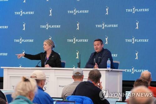 | ▲ 경기 순연을 발표하는 게리 영(오른쪽) PGA 투어 수석 심판 [로이터=연합뉴스] |