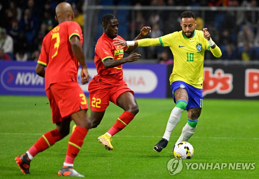 한국의 카타르 월드컵 조별리그 2차전 상대 가나는 이날 프랑스 르아브르의 스타드 오세앙에서 브라질과 친선경기를 치러 전반에만 히샤를리송(토트넘)의 두 골을 포함한 세 골이나 내주고 0-3으로 완패했다.