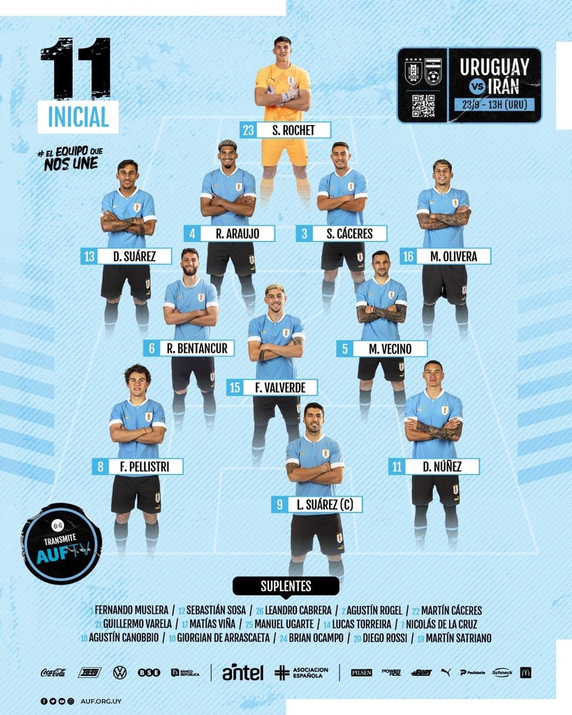 | ▲ 우루과이의 이란전 선발 라인업. [우루과이축구협회 SNS. 재판매 및 DB 금지] |