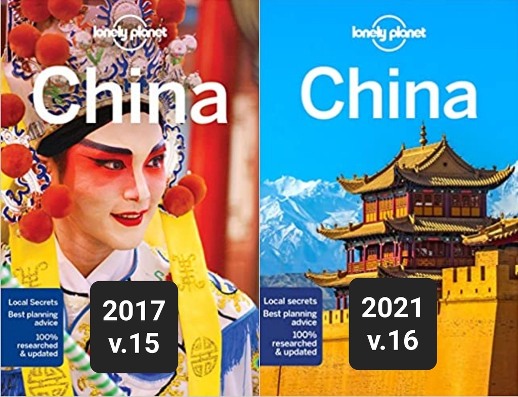 | ▲ 론리 플래닛 발행 중국 여행가이드북 2017년 판(왼쪽)과 2021년 판 표지 [반크 제공] |