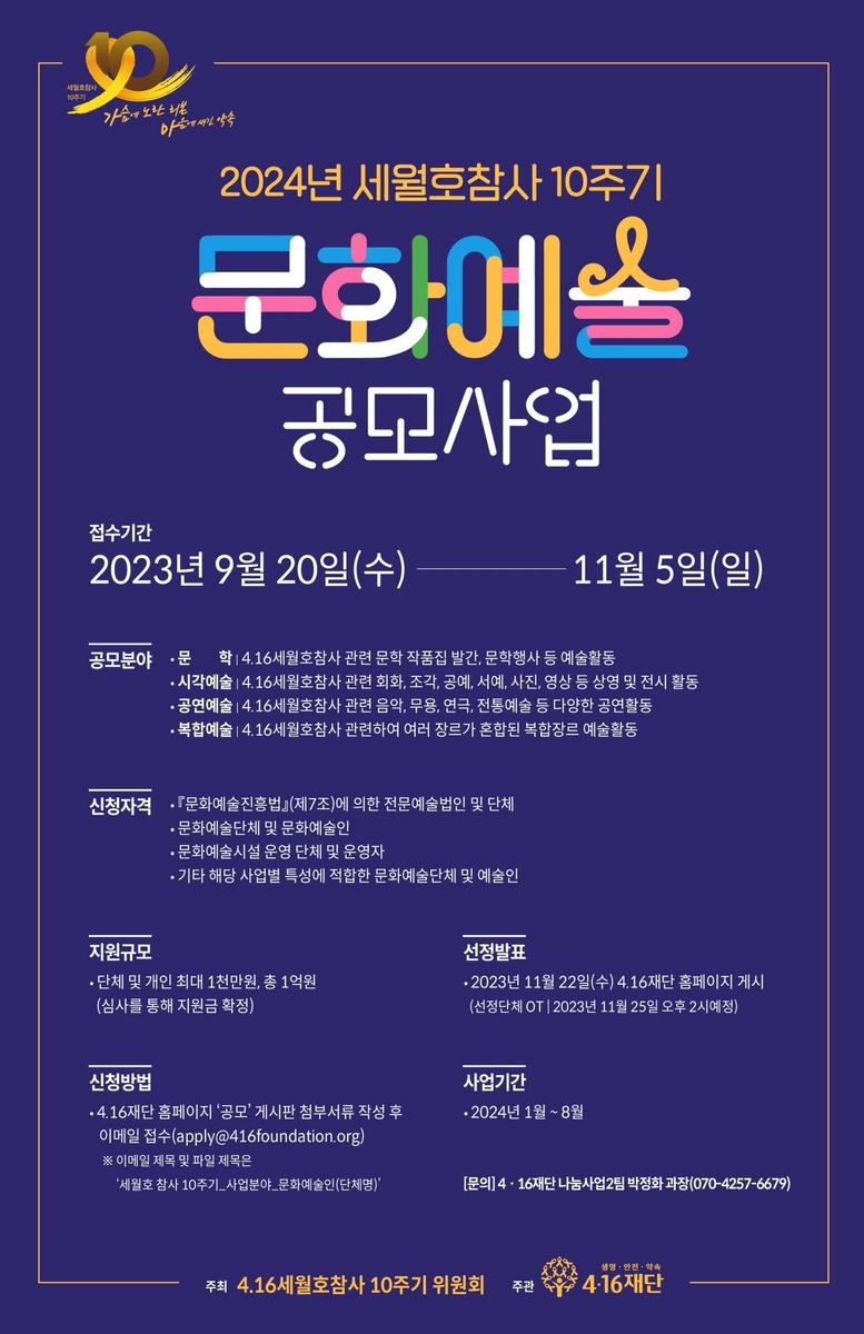 4·16재단, 세월호참사 10주기 문화예술 공모