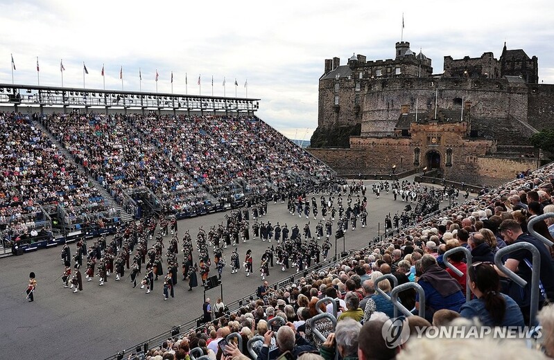 | ▲ 에든버러 밀러터리 타투 축제 (에든버러[영국]=연합뉴스) 김준범 기자 = 지난 27일 영국 스코틀랜드 에든버러에서 국제 군악축제 '로열 에든버러 밀리터리 타투'가 열리고 있다. 이장우 대전시장은 지난 26일부터 축제 발전과 국가정원 조성 등을 위해 영국 출장 중이다. 2023.8.28 psykims@yna.co.kr |