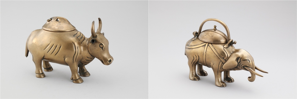 | ▲ 희준(犧尊)과 상준(象尊) 조선 왕실에서 제사를 지낼 때 술을 담아 두던 술항아리로 희준은 소의 모습을, 상준은 코끼리를 각각 본떠 만들었다. [국립고궁박물관 제공. 재판매 및 DB 금지] |