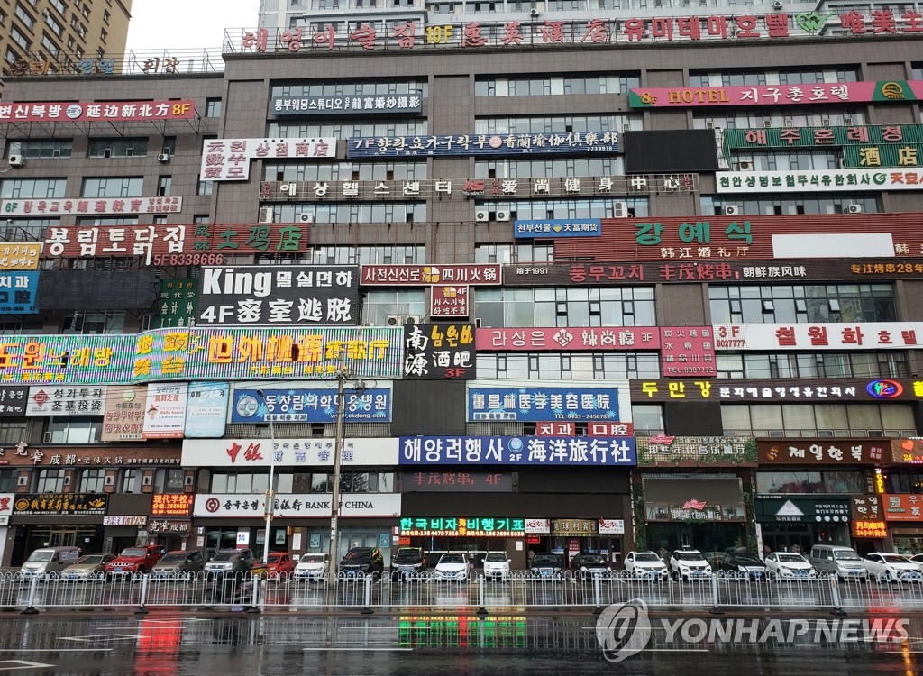 | ▲ 한국어 간판 빼곡한 중국 옌지 중국 지린성 옌볜조선족자치주 주도인 옌지의 한 건물 전체를 뒤덮은 한글 간판들.[연합뉴스 자료사진] |