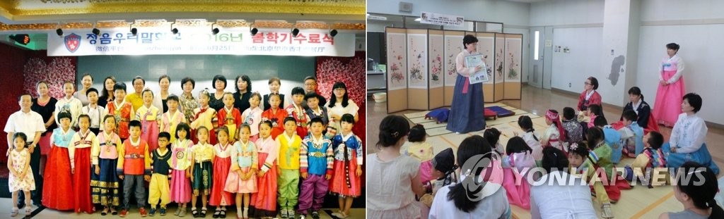 | ▲ 베이징 정음우리말학교와 도쿄 샘물학교 조선족 주말학교인 중국 베이징 정음우리말학교(좌측)의 수료식과 일본 도쿄 샘물학교의 민족예절 수업. [연합뉴스 자료사진] |