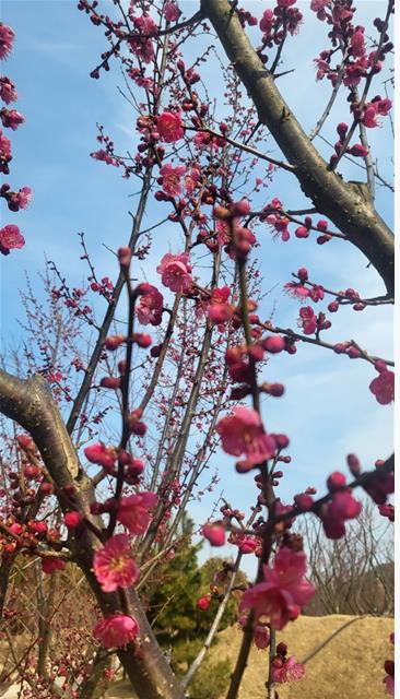 축구장 5개를 합한 면적의 바닷가 정원인 전남 신안군 임자도 백억원(百億園)에 조선홍매화가 꽃망울을 터뜨리고 있다.
