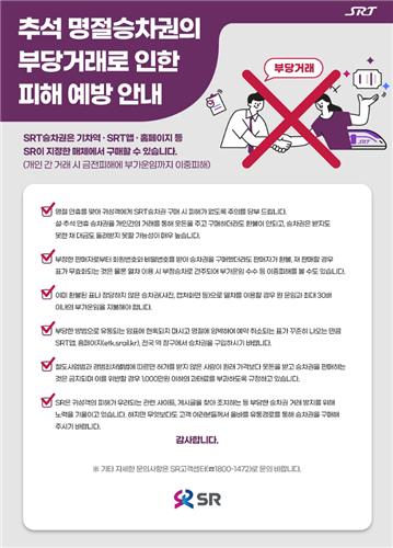 ▲ 추석 승차권 부당거래 피해 예방 안내 [SR 제공. 재판매 및 DB 금지]