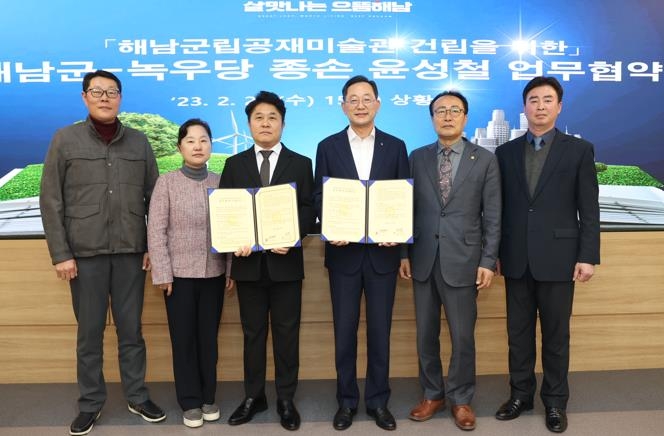 군은 미술관 건립과 관련해 해남윤씨 종가 종손 윤성철 씨와 업무협약을 체결했다.