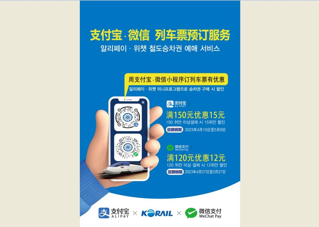 중국 온라인 플랫폼 '위챗·알리페이'서 코레일 승차권 예매한다