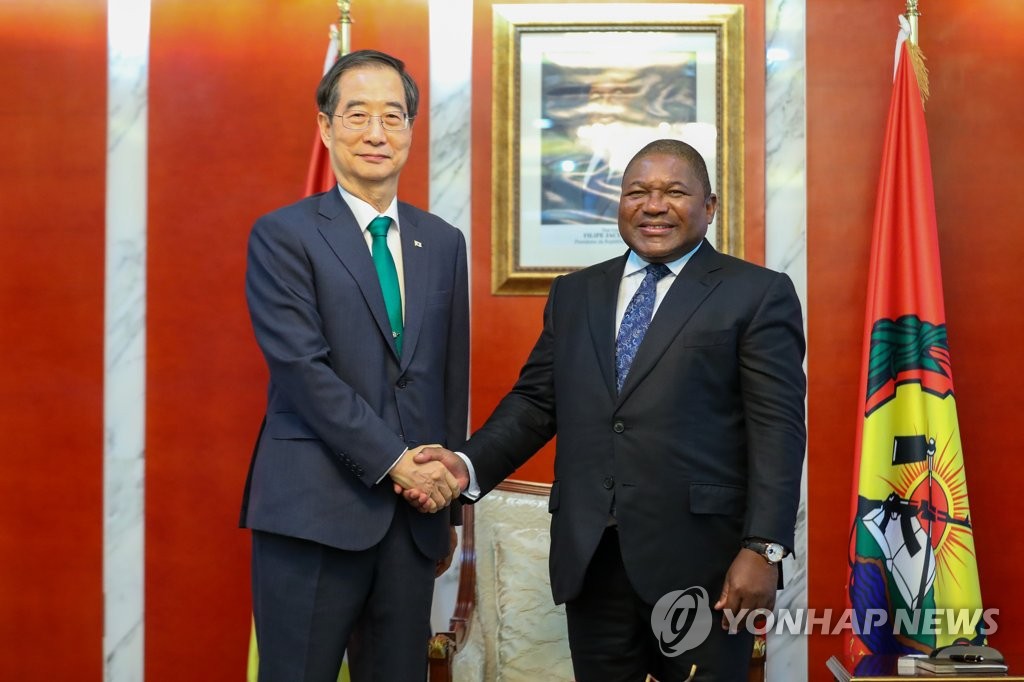 During their meeting at the presidential office in the Mozambique capital of Maputo on Wednesday (local time), Han explained Seoul's initiative to bolster cooperation with African countries and invite their leaders for a special summit in 2024, according to his office.
