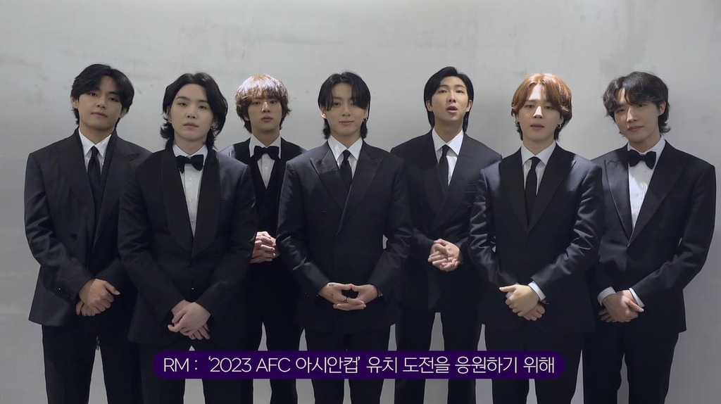 (서울=연합뉴스) 이은정 기자 = 그룹 방탄소년단(BTS)이 '2023 아시아축구연맹(AFC) 아시안컵'의 대한민국 유치 응원에 나섰다.