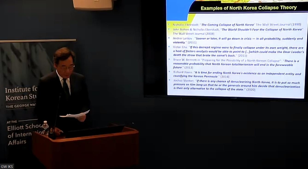 "It is not possible to succeed in denuclearization talks with North Korea without addressing its perception of security threat and desire for survival," Lee said at a North Korea policy forum hosted by the George Washington University Institute for Korean Studies.