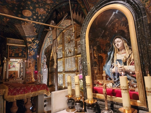 고난의 길 마지막 지점인 예수 무덤은 건물 안에 동굴 형태로 남아있다.