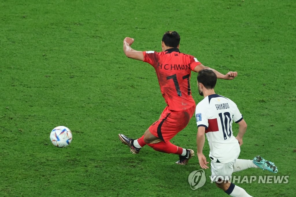 | ▲ 결승골 넣는 황희찬 (알라이얀=연합뉴스) 김주성 기자 = 3일 오전(한국시간) 카타르 알라이얀의 에듀케이션 시티 스타디움에서 열린 2022 카타르 월드컵 조별리그 H조 3차전 대한민국과 포르투갈 경기. 황희찬이 역전 결승골을 넣고 있다. 2022.12.3 utzza@yna.co.kr |