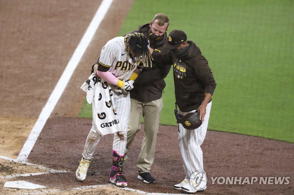| ▲ 고통스러워하는 타티스 주니어 [AP=연합뉴스 자료사진] |