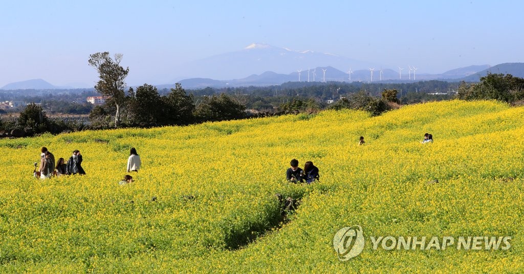 | ▲ 성큼 다가온 봄 (서귀포=연합뉴스) 박지호 기자 = 4일 오전 제주 서귀포시 성산읍 성산리의 유채밭을 찾은 관광객들이 봄기운을 만끽하고 있다. 2021.2.4 jihopark@yna.co.kr |