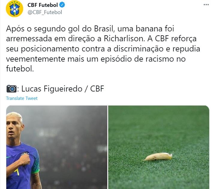 이에 브라질축구협회는 경기 후 트위터를 통해 이런 인종차별 행위를 규탄했다.