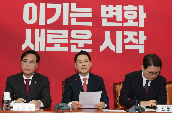 Jang Dong-hyeok (C), chief of the main opposition People Power Party, speaks during a meeting of the party's Supreme Council at the National Assembly on Jan. 12, 2026. (Yonhap)