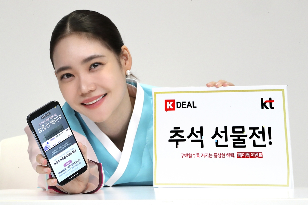 KT는 케이딜에서 다음달 4일까지 누적 15만원 이상 구매한 고객을 대상으로 최대 5만원 상당의 상품권 페이백 혜택을 제공한다.