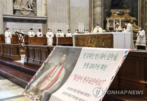 | ▲ A memorial Mass celebrating the 200th birth anniversary of St. Andrew Kim Tae-gon, the first Korean native Catholic priest, is held at St. Peter's Basilica at the Vatican, in this Aug. 21, 2021, file photo. (Yonhap) |