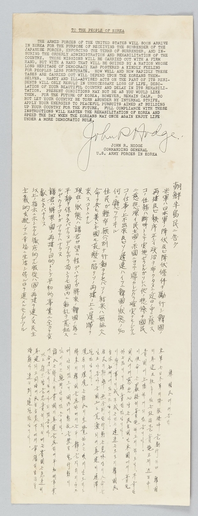 | ▲ 미군 진주를 알리는 전단(1945) [대한민국역사박물관 제공. 재판매 및 DB금지] |