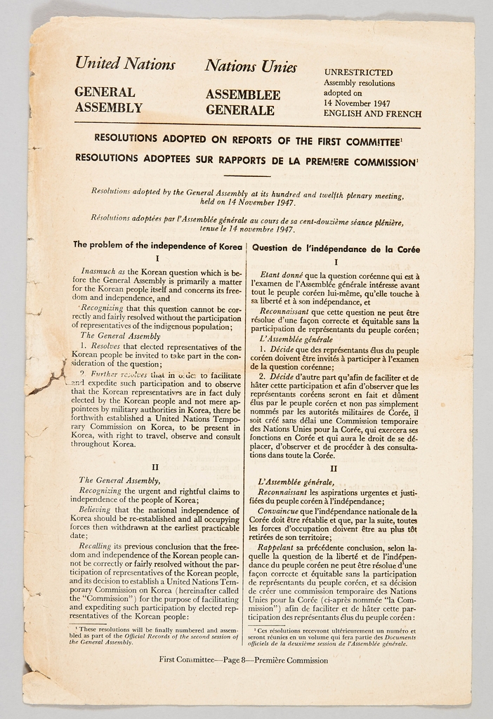 | ▲ 한국독립관련 유엔총회결의안 [대한민국역사박물관 제공. 재판매 및 DB금지] |