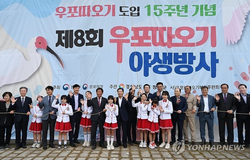 (창녕=연합뉴스) 김동민 기자 = 44년 전 한반도에서 자취를 감춘 따오기를 중국에서 들여온 지 15주년을 기념하는 야생 방사 행사가 11일 경남 창녕군에서 열렸다.