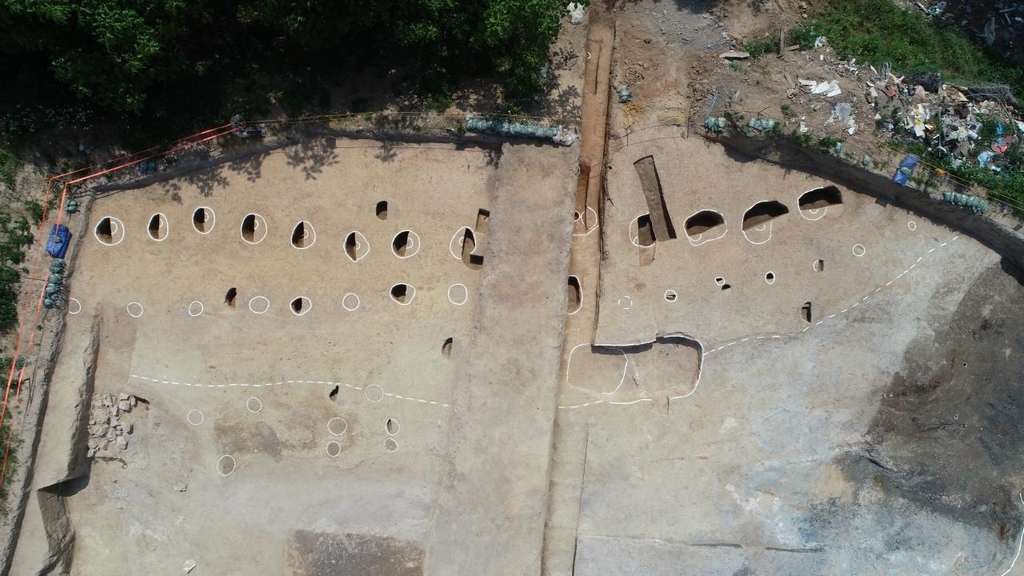 | ▲ 안성 도기동 산성 주변서 발견된 고구려 시대 유구 (안성=연합뉴스) 경기 안성시는 국가 사적으로 지정된 '안성 도기동 산성' 주변지역에 대한 문화재 발굴조사를 통해 토루, 목책열, 목곽고, 집자리, 저장구덩이 등 고구려 시대 유구를 확인했다고 30일 밝혔다. 목책을 세운 기둥자리인 '목책열'의 모습. 2022.6.30 [안성시 제공. 재판매 및 DB 금지] |