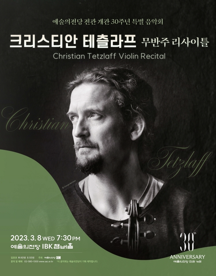 예술의전당은 오는 8일 IBK챔버홀에서 크리스티안 테츨라프 무반주 리사이틀을 연다고 23일 밝혔다. 예술의전당이 전관 개관 30주년을 맞아 올해 연중 개최하는 특별 음악회의 일환이다.