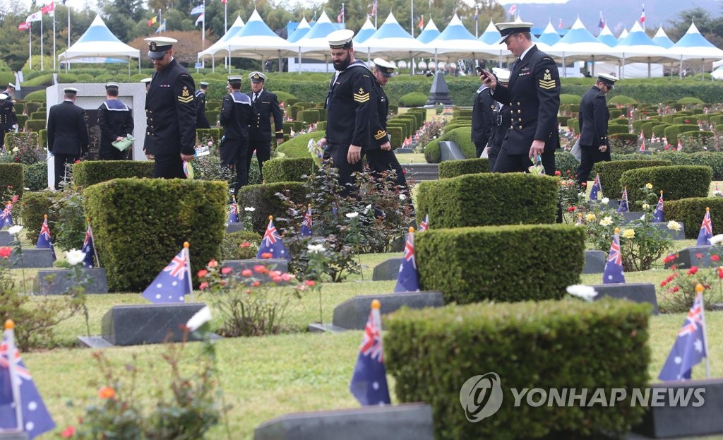 | ▲ This file photo, taken Oct. 24, 2019, shows Australian service members visiting the U.N. Memorial Cemetery in Korea in Busan, 320 kilometers southeast of Seoul. (Yonhap) |