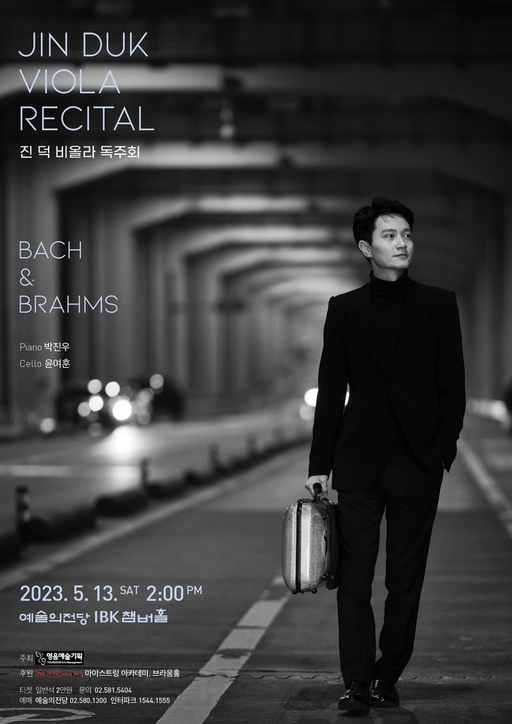 ▲ 비올리스트 진 덕 '바흐 & 브람스' 독주회 = 비올리스트 진 덕이 오는 13일 서울 예술의전당 IBK챔버홀에서 '바흐 & 브람스' 독주회를 연다.