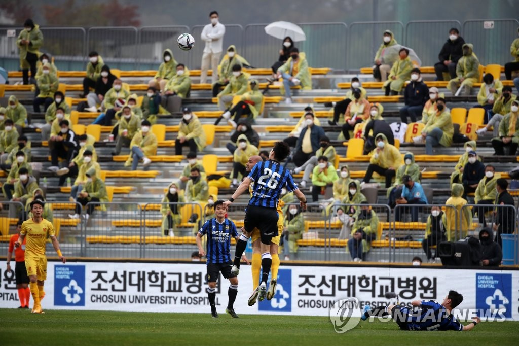 | ▲ This file photo from April 4, 2021, shows fans attending a K League 1 match between the home team Gwangju FC and Incheon United at Gwangju Football Stadium in Gwangju, 330 kilometers south of Seoul. (Yonhap) |