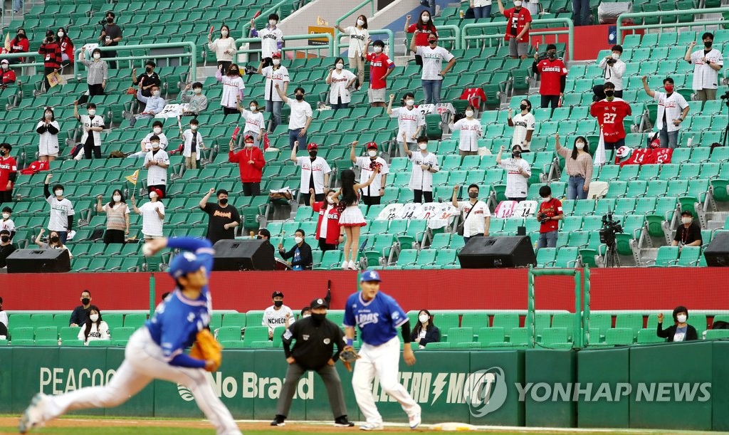 | ▲ Fans attend a Korea Baseball Organization regular season game between the home team SSG Landers and the Samsung Lions at Incheon SSG Landers Field in Incheon, 40 kilometers west of Seoul, on June 1, 2021. (Yonhap) |