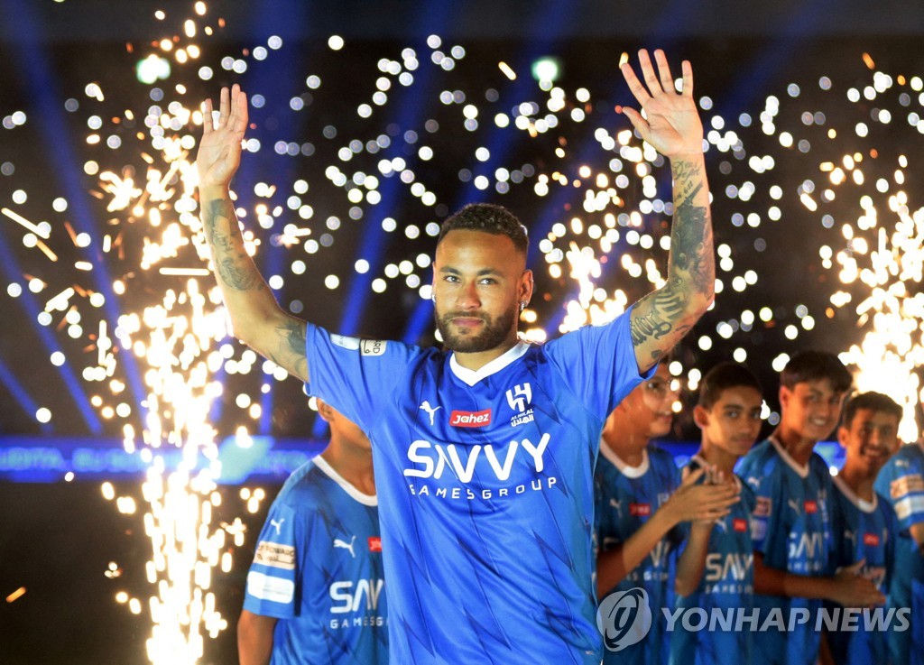 (서울=연합뉴스) 설하은 기자 = 네이마르(브라질)가 새로 둥지를 튼 알힐랄(사우디아라비아)의 푸른 유니폼을 입고 홈팬 앞에 첫선을 보였다.