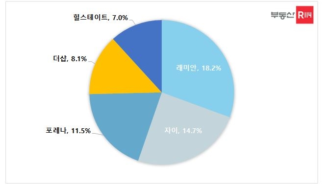포스코건설 '더샵'(8.1%)과 현대건설·현대엔지니어링 '힐스테이트'(7.0%) 등도 상위 5곳에 포함됐다.