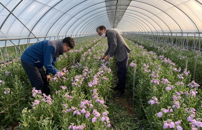 해남군 스토크 꽃 수확 한창…"몽실몽실 향기 가득"