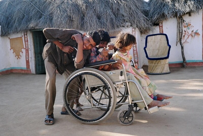 ▲ 전윤선의 휠체어를 타며 미소 짓는 인도 아이들 [전윤선 제공, 재판매 및 DB 금지]