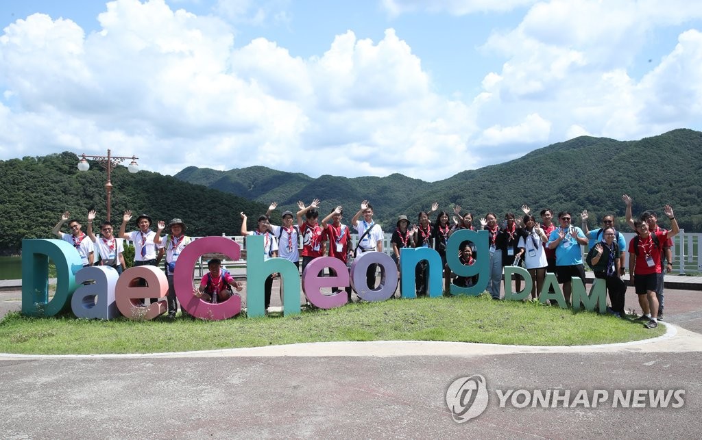 | ▲ 대청댐 찾은 잼버리 싱가포르 대원들 (대전=연합뉴스) 2023 새만금 세계 스카우트 잼버리에서 조기 퇴영한 싱가포르 대원들이 7일 대전 대청댐을 견학한 뒤 기념 촬영을 하고 있다. 2023.8.7 [한국수자원공사 제공. 재판매 및 DB 금지] jyoung@yna.co.kr |