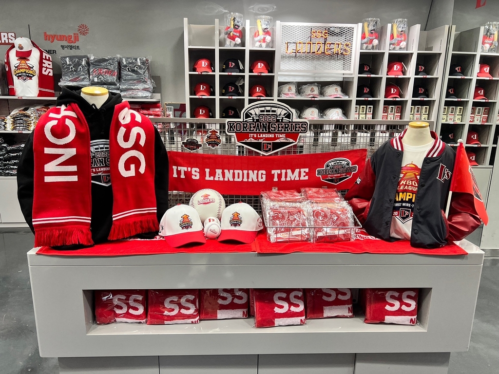 한국시리즈 6차전 경기가 있었던 지난 8일에도 인천 SSG랜더스필드 내 기념품 매장 '랜더스샵 by hyungji'에 팬들의 발걸음이 이어졌다.