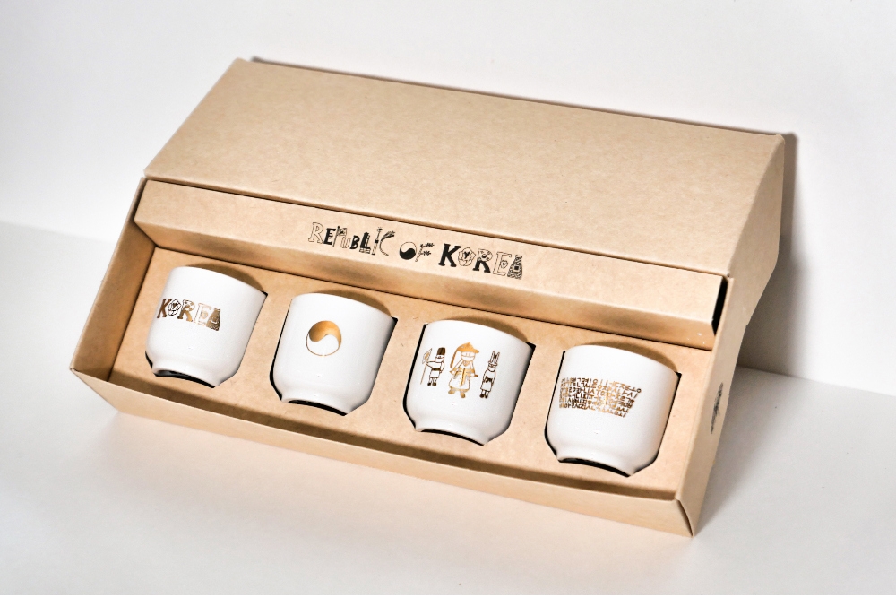 술잔 세트는 조선시대 수문장의 교대 의식, 대한민국 상징물 등을 표현했다.