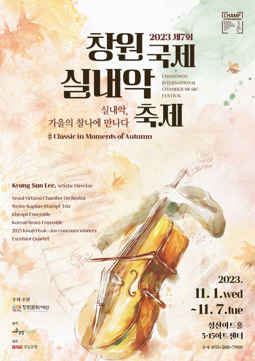 (창원=연합뉴스) 김선경 기자 = 창원문화재단은 '2023 제7회 창원국제실내악축제'를 오는 11월 1일부터 7일까지 성산아트홀과 3·15아트센터에서 연다고 5일 밝혔다.