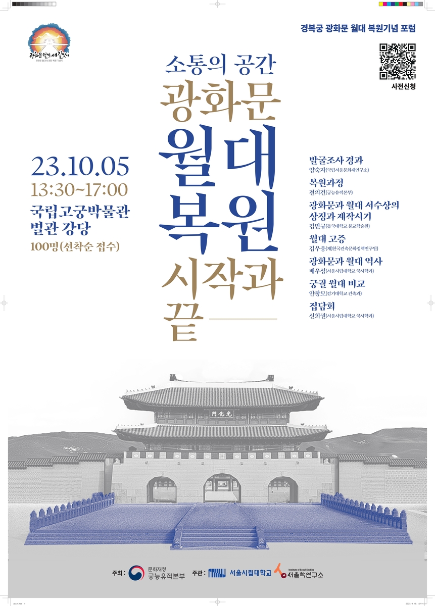 광화문과 월대의 역사, 경복궁과 월대 복원의 역사적·도시적 가치, 광화문 앞 월대 고증 연구 등을 주제로 전문가 발표와 토론이 이어진다.