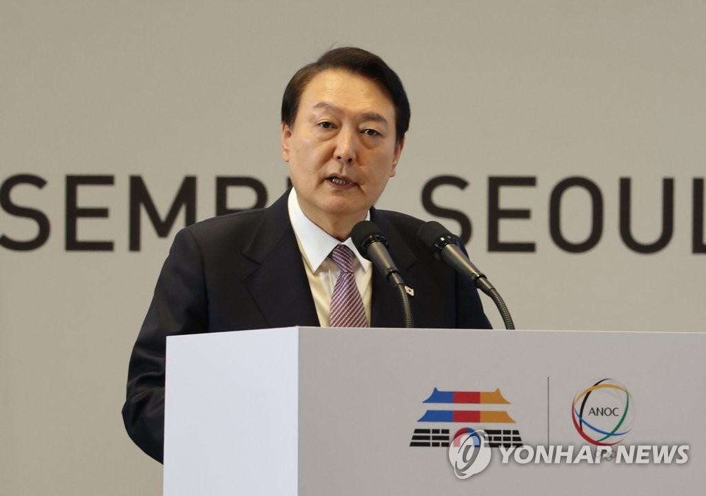 Yoon gave a keynote speech at the opening of the 26th General Assembly of the Association of National Olympic Committees (ANOC) at the Convention and Exhibition Center (COEX) in southern Seoul.