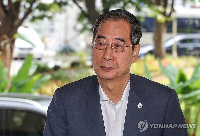 | ▲ Prime Minister Han Duck-soo arrives for work at the government complex in Seoul on Sept. 22, 2023. (Yonhap) |