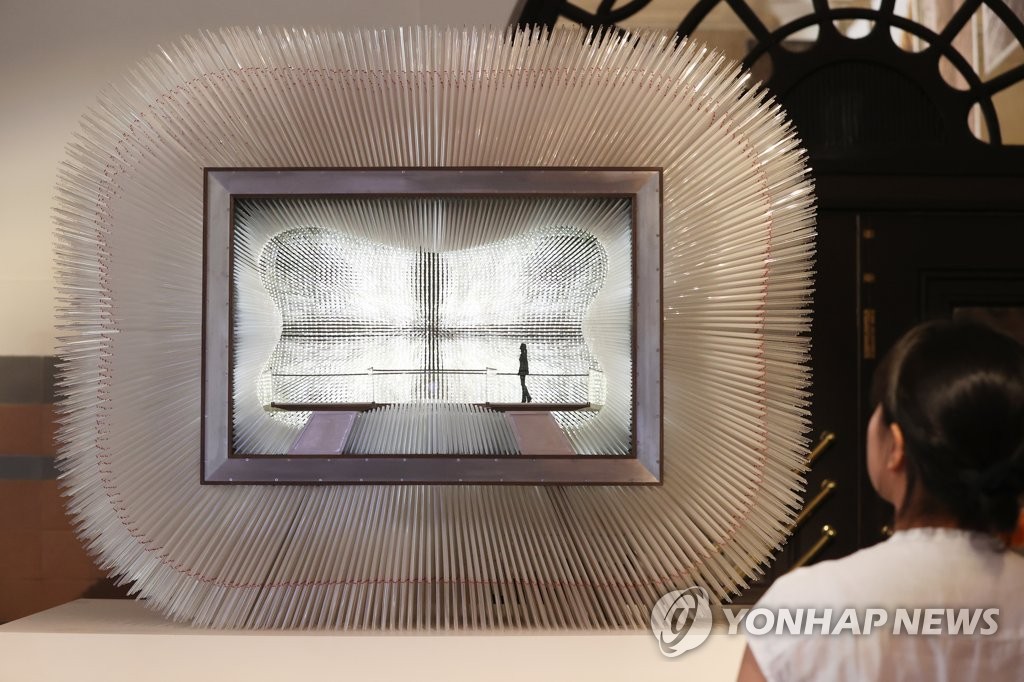 ▲ 서울에서 만나는 헤더윅 스튜디오 프로젝트 (서울=연합뉴스) 강민지 기자 = 28일 오전 서울 중구 문화역 서울 284에서 '헤더윅 스튜디오:감성을 빚다' 전시 간담회 참석자가 작품을 둘러보고 있다. 2023.6.28 mjkang@yna.co.kr